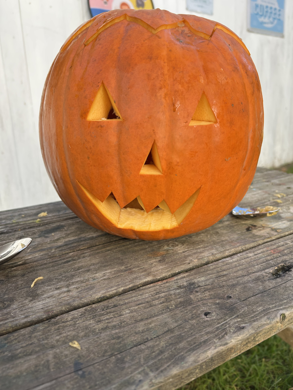 Wir haben einen Kürbis geschnitzt
