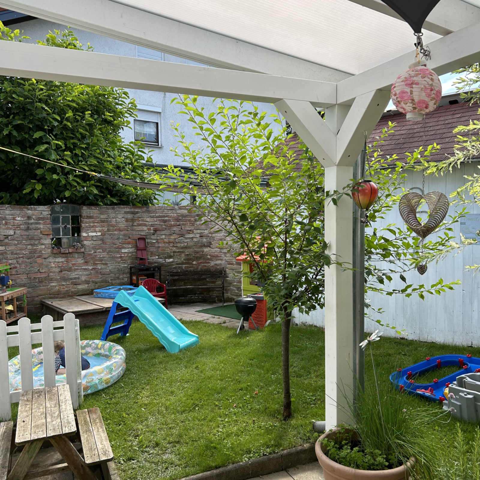 Unser extra für die Kindertagespflege kleiner, eingezäunter Garten lädt die Kinder zum