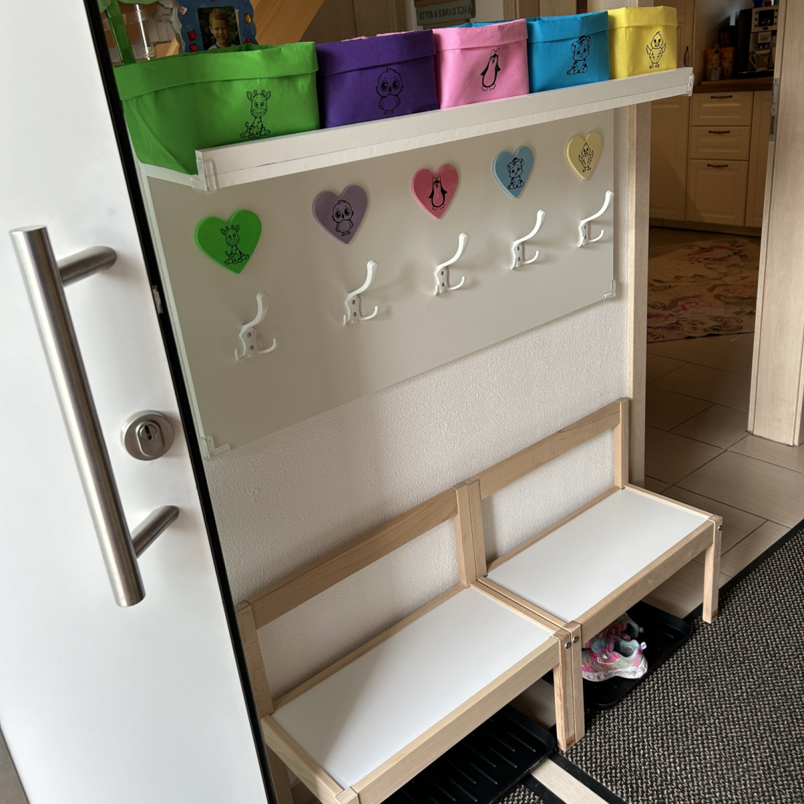 Küche, dem Flur mit Garderobe, sowie dem Badezimmer mit Dusche